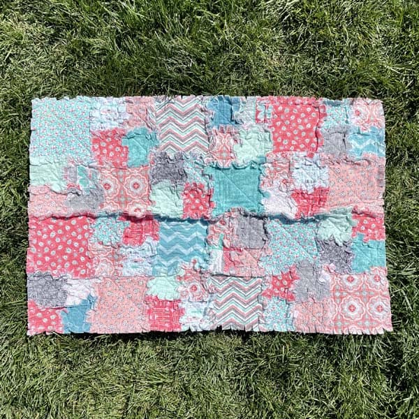 Coral and Teal Raggedy Quilt – Crib Size